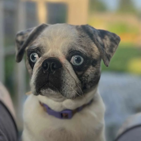 True to classic pug personality, Marg is a lover of all things cozy, cuddly, and snack-related. Whether she’s curled up for a nap, following her nose to the kitchen, or snuggled up in your lap, she brings a calm and loving presence that makes her a favorite among both humans and fellow pugs alike.